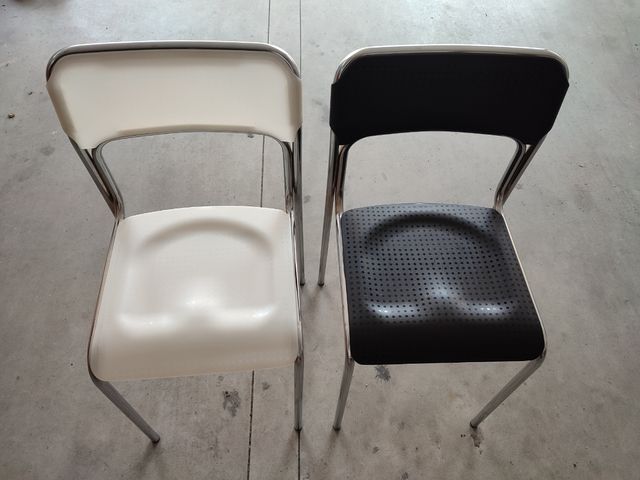 vendo 7 sedie in plastica con telaio in acciaio molto resistenti 4 bianche e 3 sedie nere a 10 euro l'una