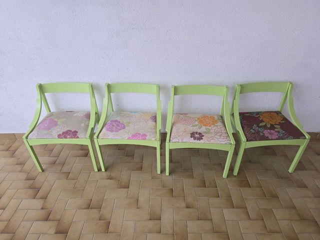 Sedie verdi restaurate a mano 4 pezzi