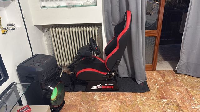 Sedile XTREME da corsa reclinabile con supporto per volante con slitta regolabile pedaliera e cambio. Regolabile compatibile con tutte le consolle e i volanti. Simulatore di corse per PC o consule giochi composto da 1 sedile sportivo + 1 telaio incluso