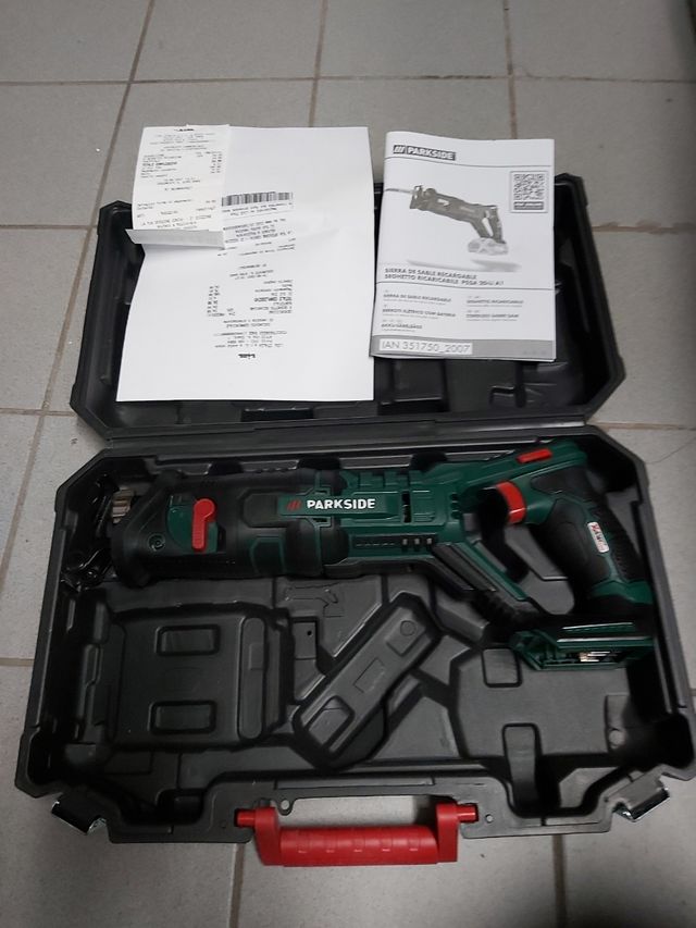 Dettagli del prodottoSega a Sciabola Gattuccio Parkside Batteria V20 in garanzia. Solo corpo macchina,senza batteria caricabatterie e lame.con valigetta di trasporto,libretto uso e manutenzione e scontrino per garanzia fino a fine giugno 23.
