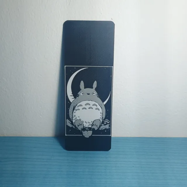 Segnalibro con un simpatico disegno di Totoro seduto sulla luna. - Design ispirato a Il mio vicino Totoro. - Immagine di Totoro su sfondo lunare e stellato. - Materiale PLA