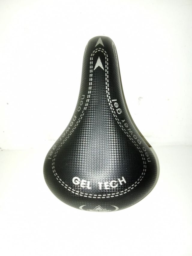 Sella per bicicletta con tecnologia Gel Tech e imbottitura ammortizzata. - Design con cuciture a contrasto. - Superficie con texture a rombi.