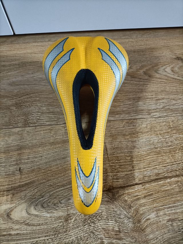 Dettagli del prodottoSella da bicicletta gialla con foro antiprostata, per un maggiore comfort, usata ma in buone condizioni. Ideale per chi cerca un tocco vintage per la propria bici.