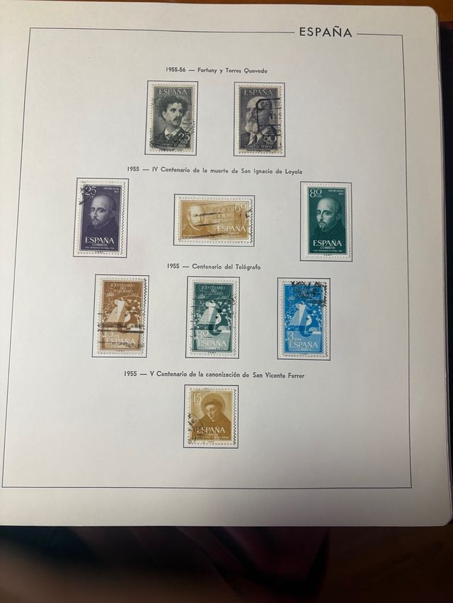Dettagli del prodottoCollezione di francobolli spagnoli degli anni 1955 e 1956. Include francobolli commemorativi. Temi: Fortuny e Torres Quevedo, IV Centenario della morte di San Ignacio de Loyola, Centenario del Telegrafo e V Centenario della canonizzazione di San Vicente Ferrer. Design vari con ritratti e figure storiche. La descrizione è stata tradotta automaticamente.