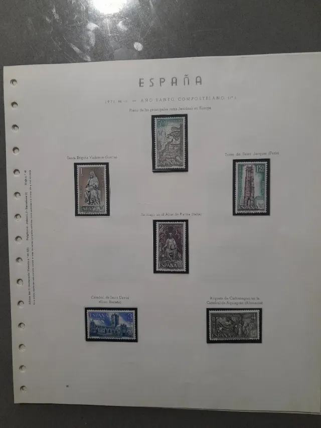 Dettagli del prodottoSet di francobolli spagnoli del 1971. Su fogli dell'album del II Centenario di Puigferrat. Francobolli nuovi. Include francobolli con rappresentazioni di percorsi jacobei e monumenti. Ogni francobollo mostra il valore nominale e il paese. La descrizione è stata tradotta automaticamente.
