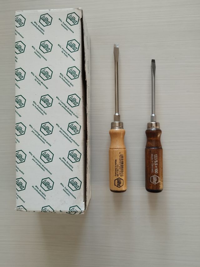 Serie 2 cacciaviti Wiha manico legno lama passante mm.5,5x100 mm.7x125
