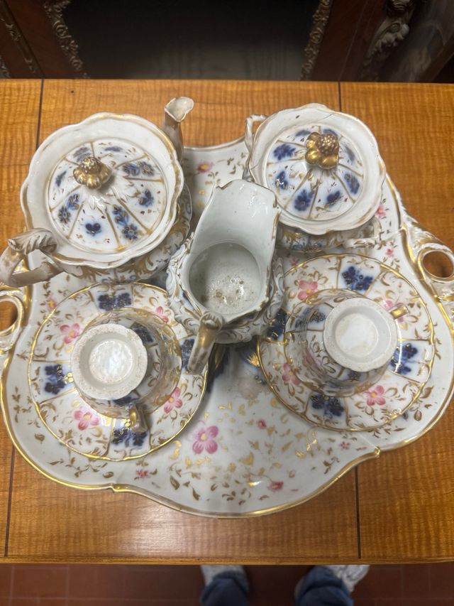 Dettagli del prodottoElegante servito da caffè in porcellana finemente decorata a mano. lunghezza vassoio 40cm