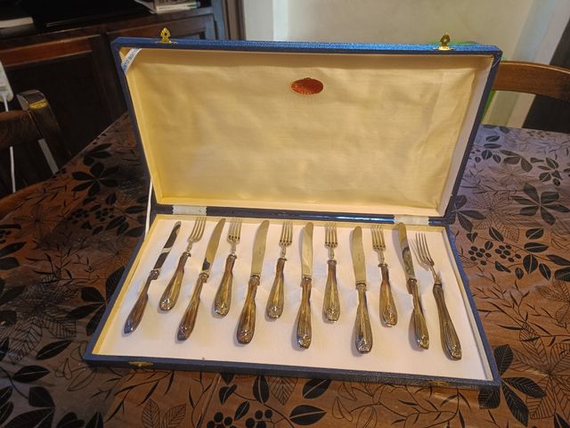 servito di posate in argento 800 in confezione originale. 6 forchette e 6 coltelli di splendida fattura. Mai utilizzate