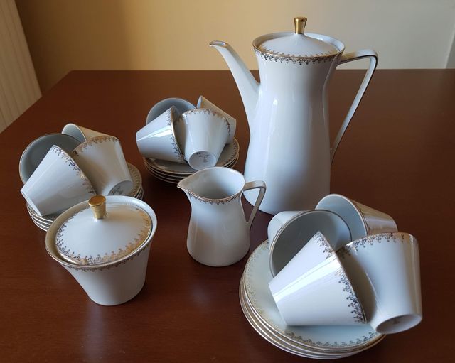 Dettagli del prodottoVendo servizio da caffè in porcellana "Bavaria Schirnding" con greca in oro.