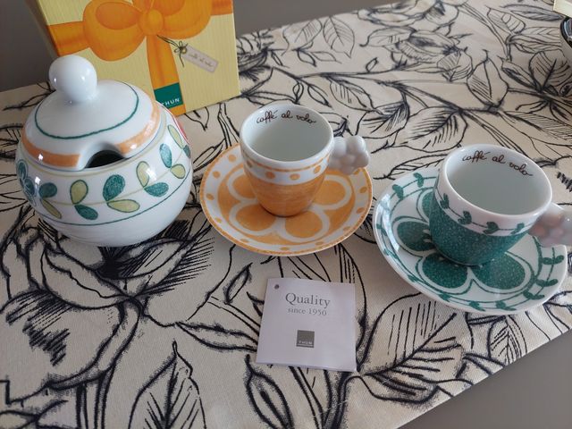 Dettagli del prodottoservizio Thun due tazzine caffè con piattini e zuccheriera, mai usato con scatola e certificatio Misure del prodotto