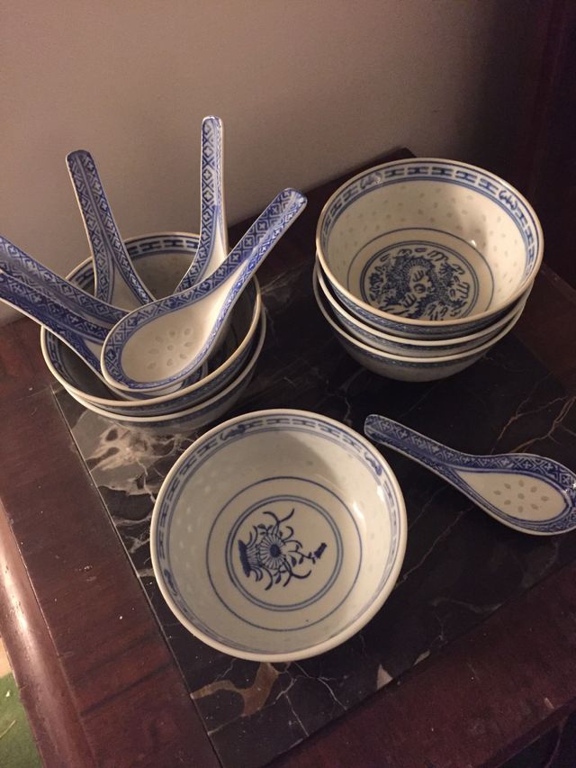 Servizio di ciotoline cinesi con cucchiai, 6 ciotoline e 6 cucchiai