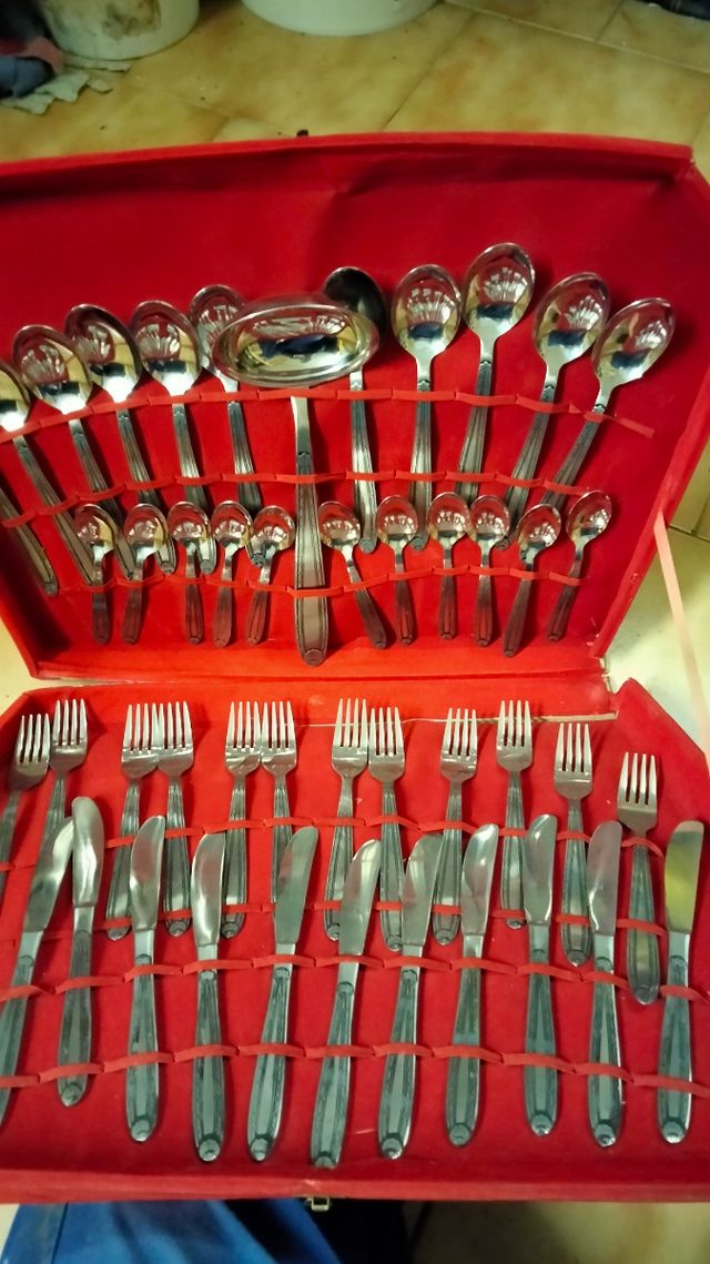 Dettagli del prodottovendo servizio di posate in acciaio nuovo mai usato, però nel servizio manca 1 cucchiaino 48 pezzi in totale, 30 €( Nel profilo ho pubblicato articoli vari se siete interessati a più prodotti contattatemi possiamo fare una unica spedizione)