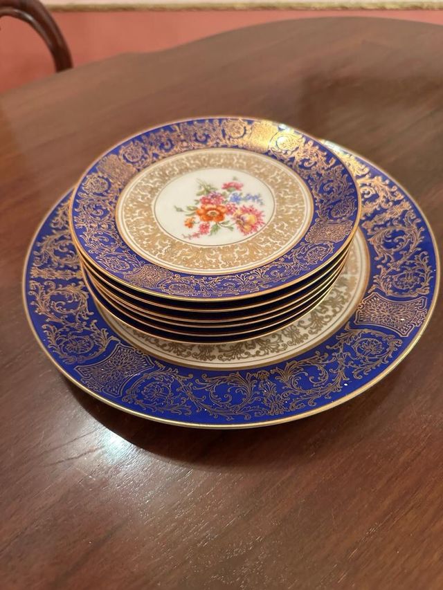 Piatto da portata e sei piattini da dolce in ceramica tedesca Tirschenreuth Bavaria