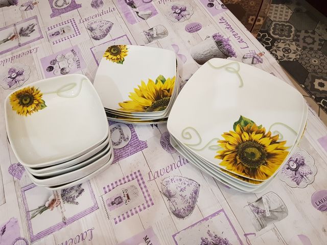 servizio 18 pz con girasoli. 6 piattini, 6 piatti piani e 6 piatti fondi