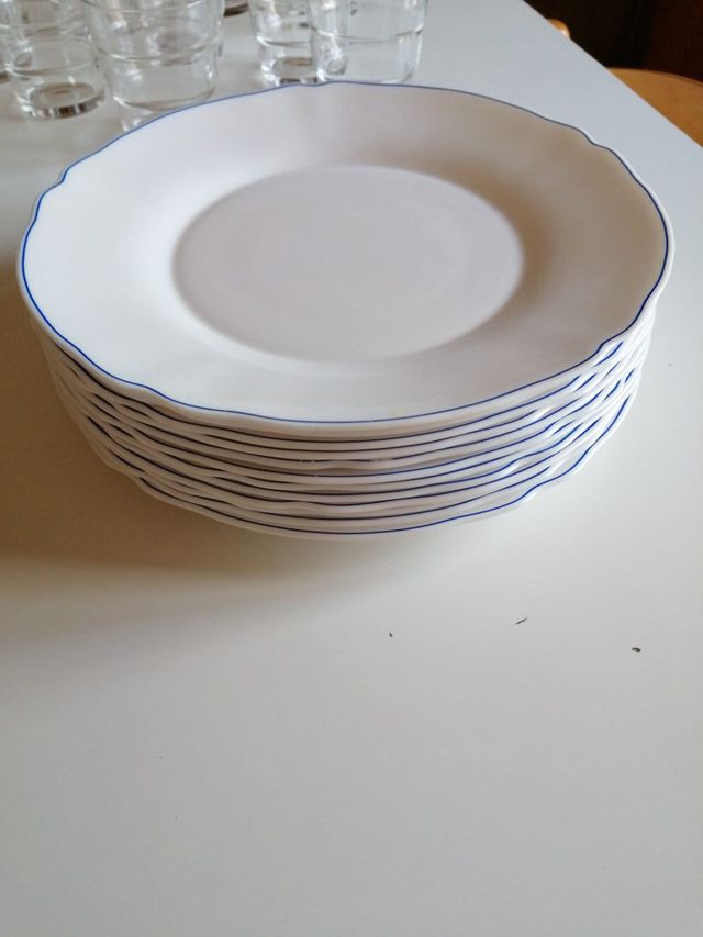 Dettagli del prodottoOffro servizio piatti da 12 composto da 12 piatti piani e 12 piatti fondi + 11 bicchieri come da foto per un totale di 35 pezzi. Preferibile consegna a mano. Pagamento in contanti. Gli oggetto non sono stati usati.