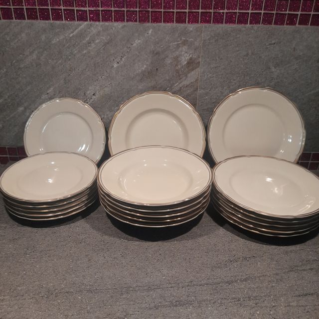 servizio da 6 ceramiche king's, made in Italy...6 piatti fondi, 6 piani e 6 da dessert, fatti a mano con bordatura in oro zecchino