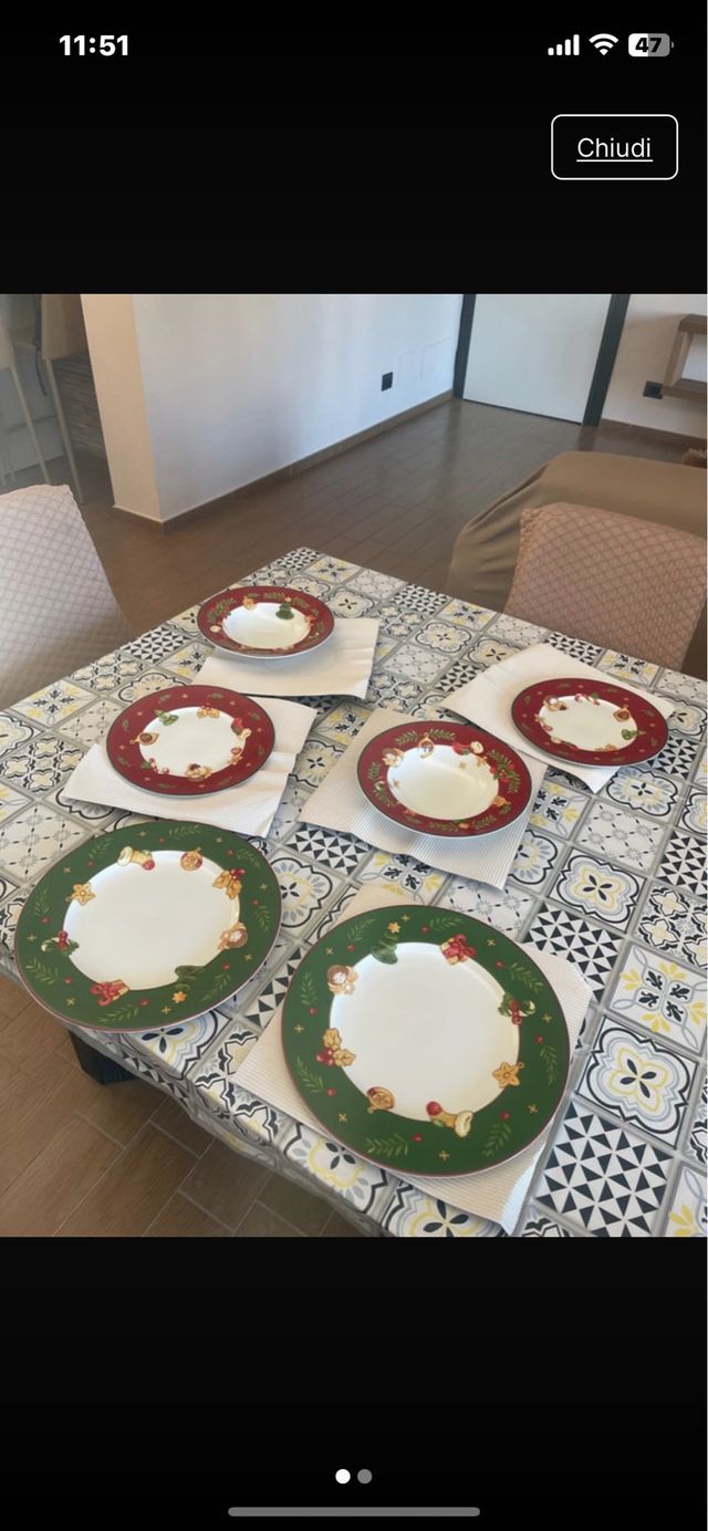 Servizio Piatti da 6 Thun Natalizi Rossi e Verdi .