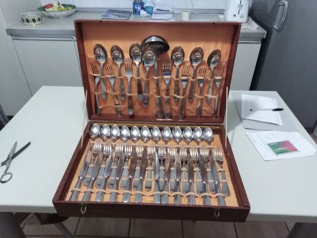 Servizio da 12 per totale 87 pezzi in acciaio inox con custodia. Consegna a mano Stefano Cell. 3898818093