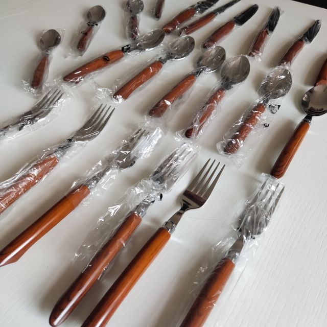 Servizio Posate da 6 totale 24 pezzi Nuovo manici in plastica effetto legno