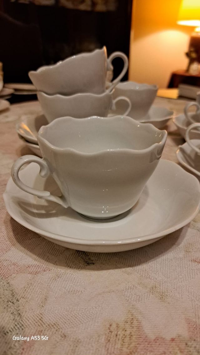 servizio tazze da tè/cioccolato da 6. totale 12 pz. piattini ciotoline per pasticcino. motivo orlo ondulato. ceramica smaltata.