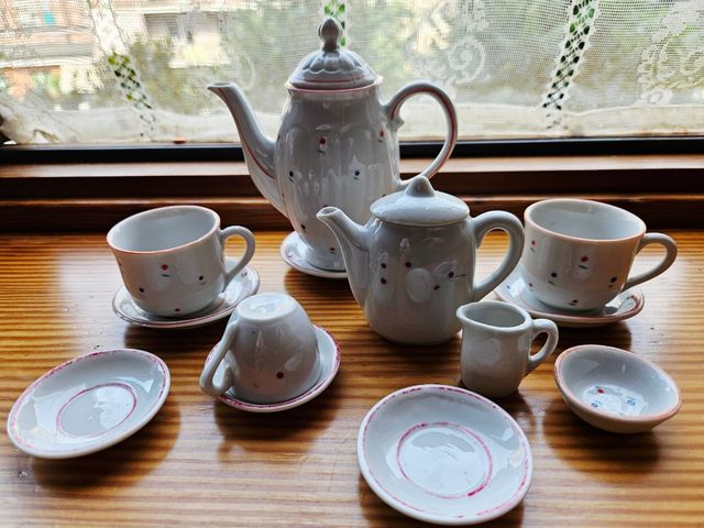 - Set completo di teiera, lattiera e tazzine + piattini per biscotti.