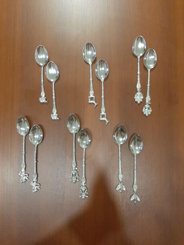 Dettagli del prodottoset di 12 cucchiaini silver vintage anni 70 raffiguranti sei soggetti diversi