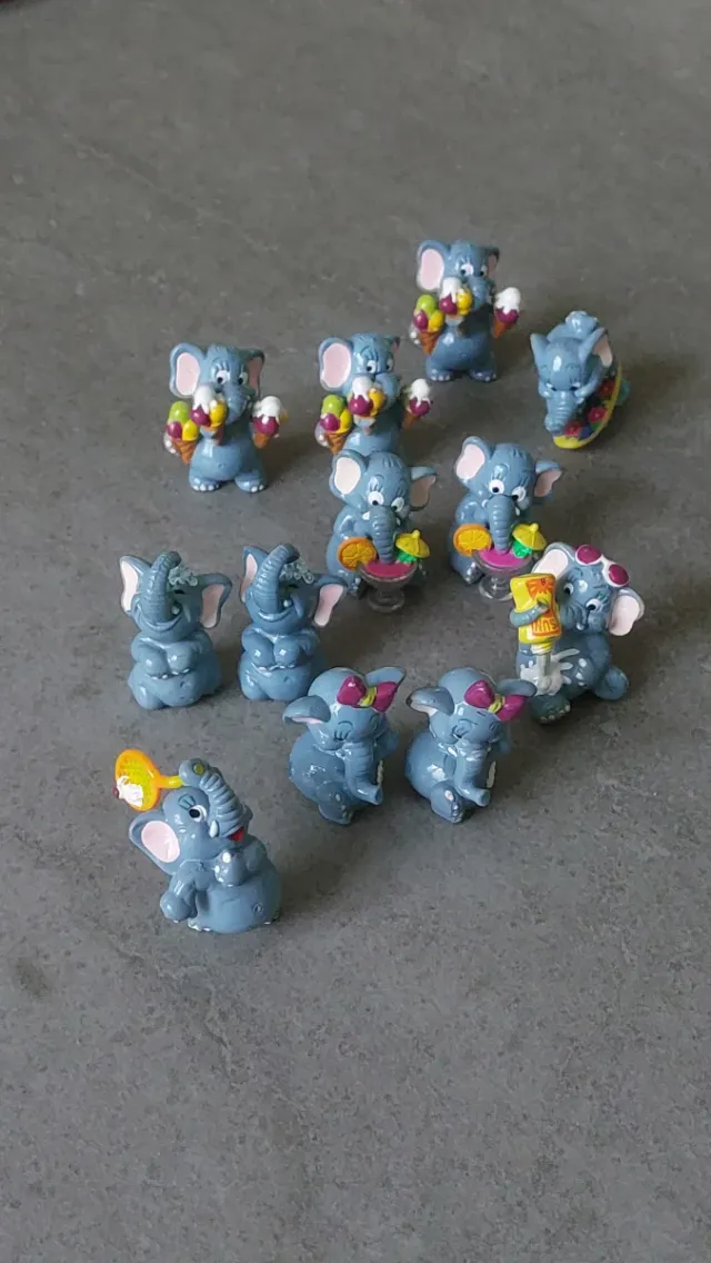 Dettagli del prodottoGrazioso set di 12 statuine di elefanti, perfette per collezionisti o come giocattolo. Qualcuno doppio.