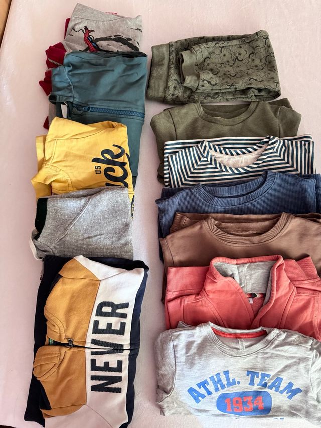 Lotto di 12 felpe per bambino, taglia 92-98 cm. - Diverse fantasie e colori. - Tessuto morbido e confortevole.