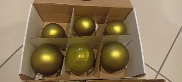 Set di 16 palline natalizie in vetro. - Colore: verde oliva - Materiale: vetro.