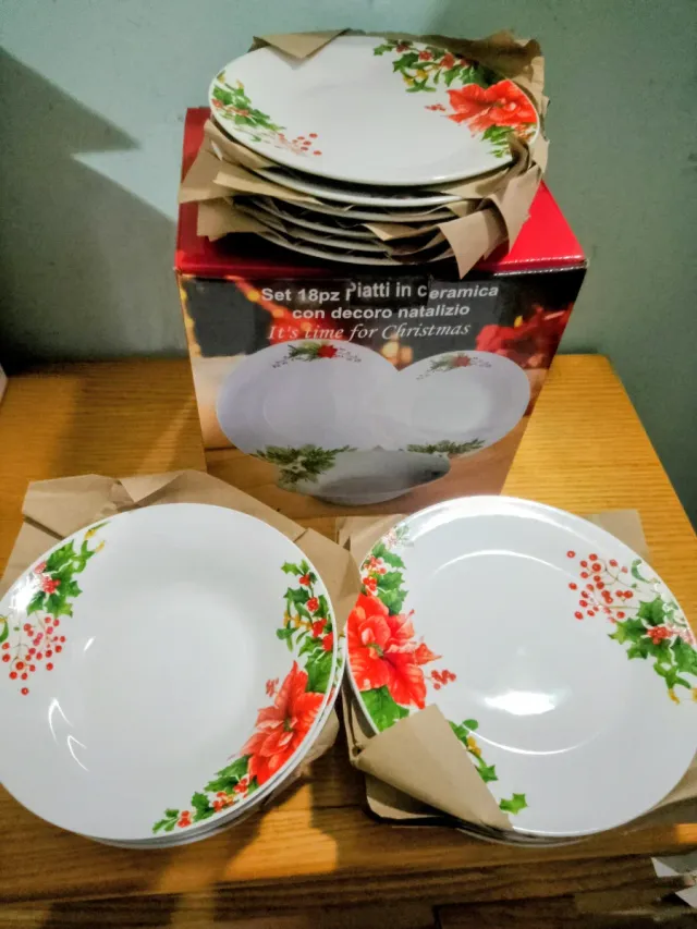 Set 18 piatti ceramica decoro natalizio