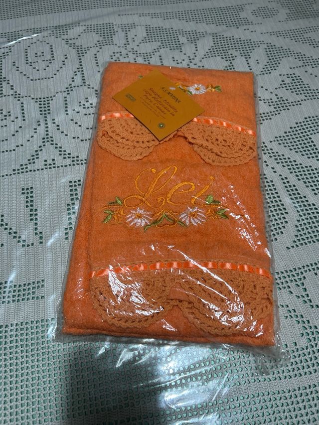 Set 2 Asciugamani Arancioni Ricamati