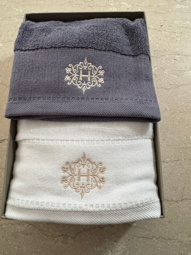 Set 2 asciugamani Hervit grigi e bianchi