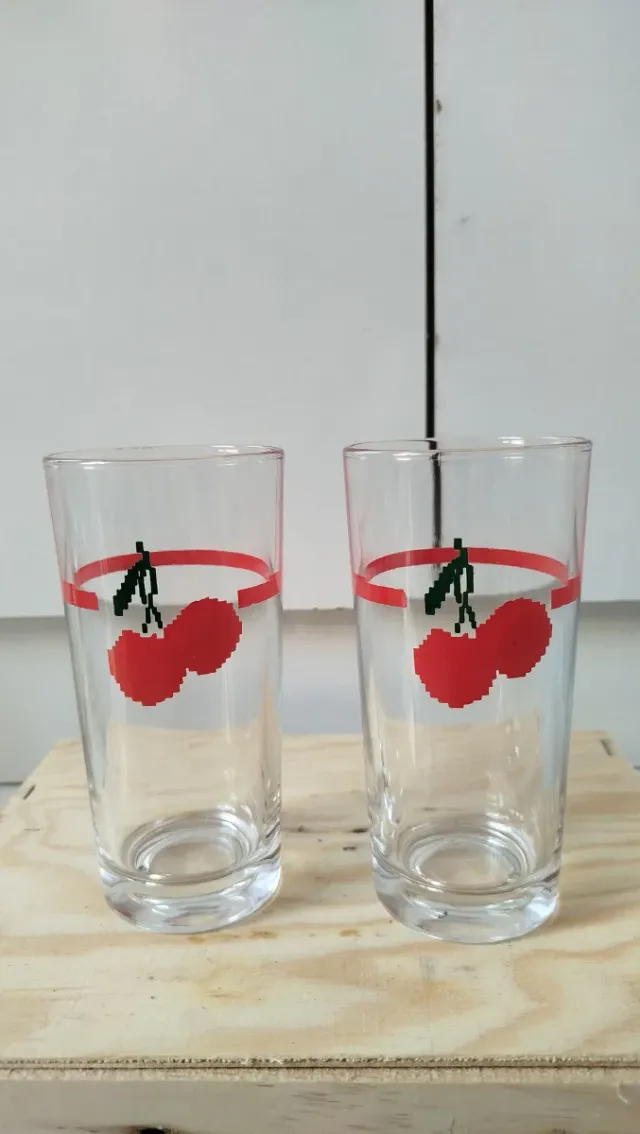 Set 2 Bicchieri Ciliegie Rosso Trasparente