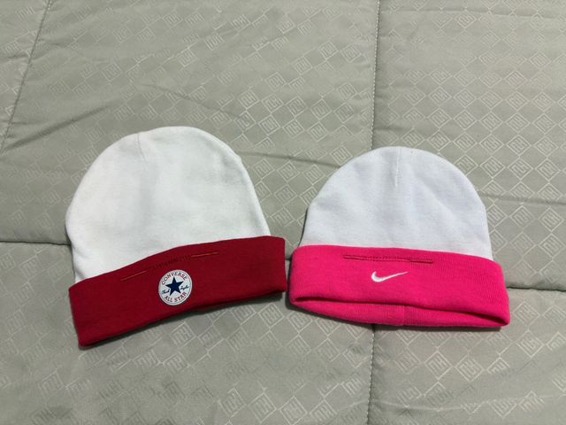 Dettagli del prodottoSet di due cappellini invernali per neonato, uno con logo Converse All Star e uno con logo Nike.
