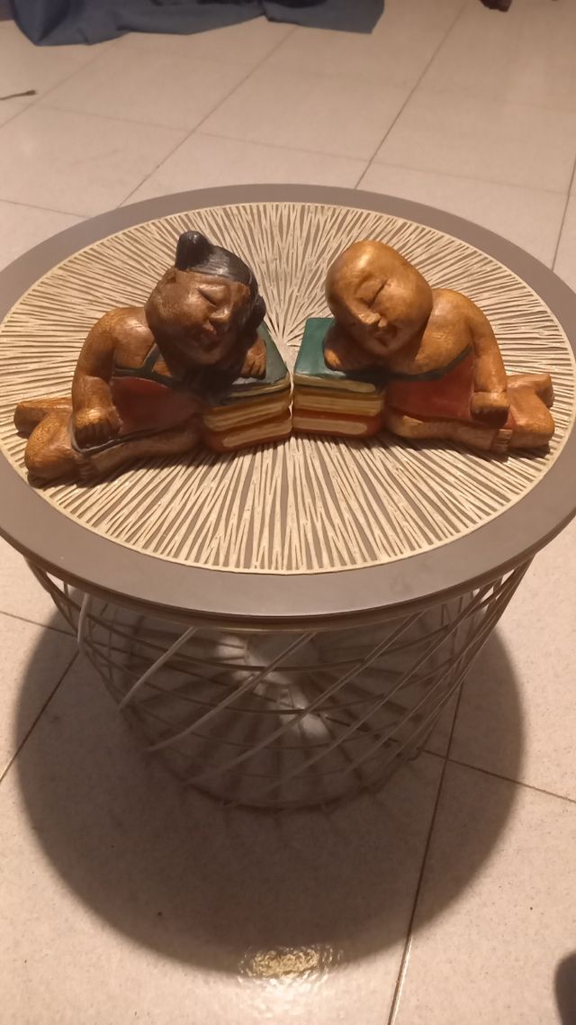Dettagli del prodottoBellissimo set di due ferma libri a forma di bambini che leggono. Sono realizzati in legno dipinto a mano e presentano dettagli molto curati. Ideali per decorare una libreria o una scrivania.