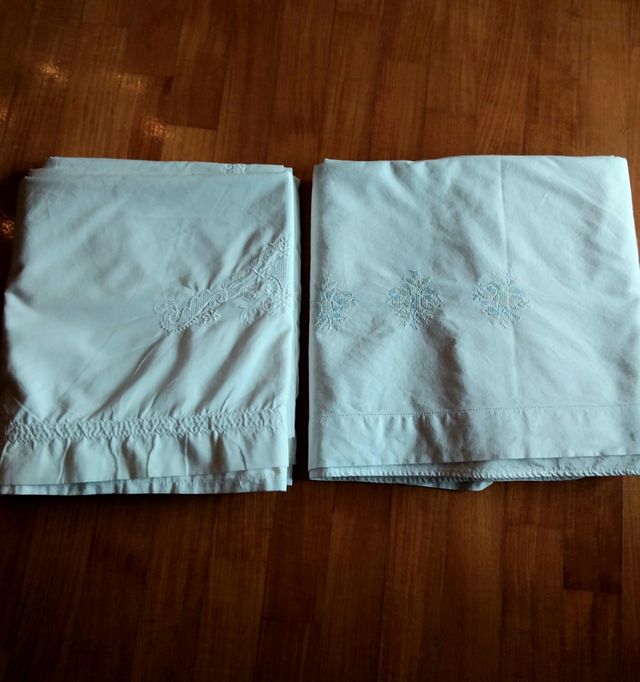 Dettagli del prodottoset 2 lenzuola solo sopra, cotone vintage, colore bianco con ricami, uno più liscio tutto bianco,