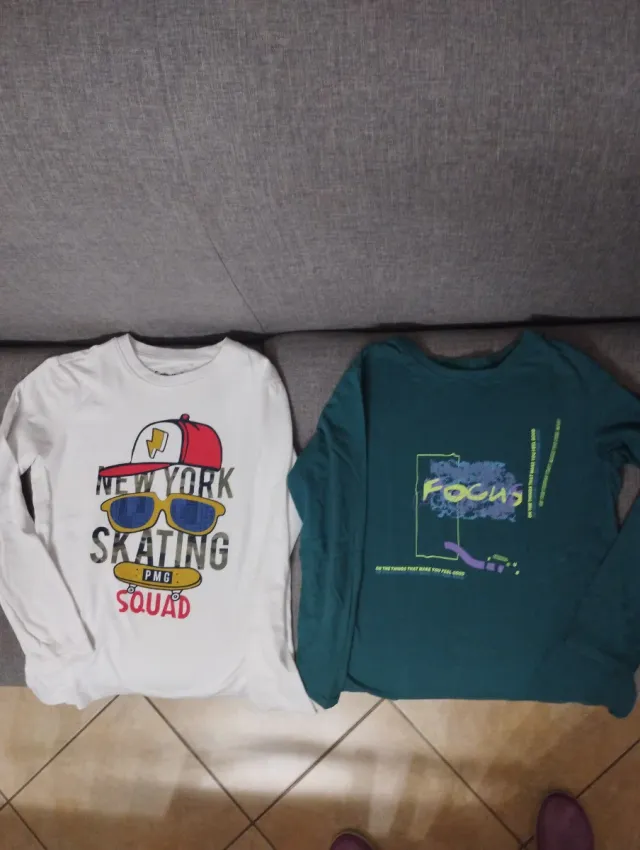 Dettagli del prodottoSet di due magliette a maniche lunghe per bambino, realizzate in cotone.