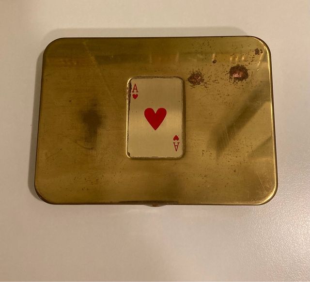 - Scatola in ottone con decorazione a forma di asso di cuori.