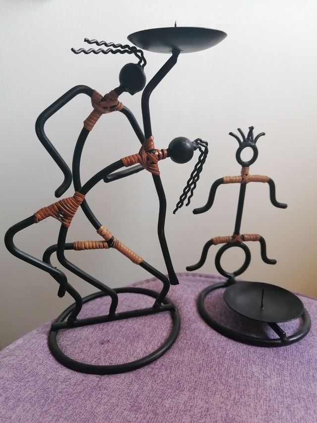 Set 2 Porta Candele etnici, metallo e legno. Dimensione: 23x16 cm e 15x10 cm