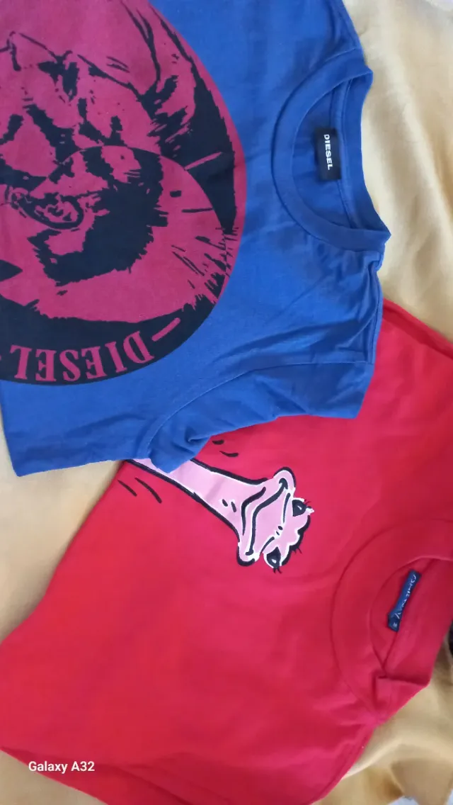 Set di tre magliette. - Maglietta blu Diesel con stampa frontale. - Maglietta rossa con stampa frontale. - maglietta corallo con scritta NYC SKATE