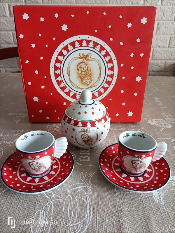 Set 2 tazzine + zuccheriera Dolce Natale THUN Vendesi set Dolce Natale THUN Composto da nr. 2 tazzine da caffè e nr. 1 zuccheriera. Nuovo e mai usato