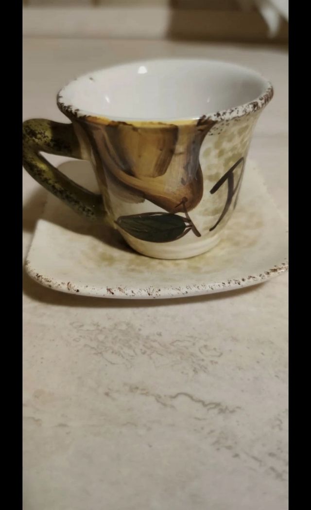 set 2 tazzine con piattino in ceramica dipinte a mano. nuove, mai usate.