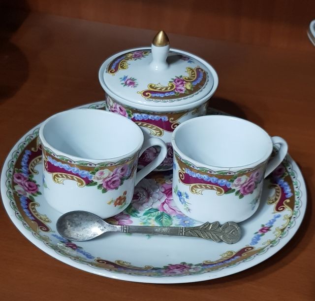 Dettagli del prodottoMai usato. Porcellana Limoges dipinta a mano floreale con riporti on oro. (