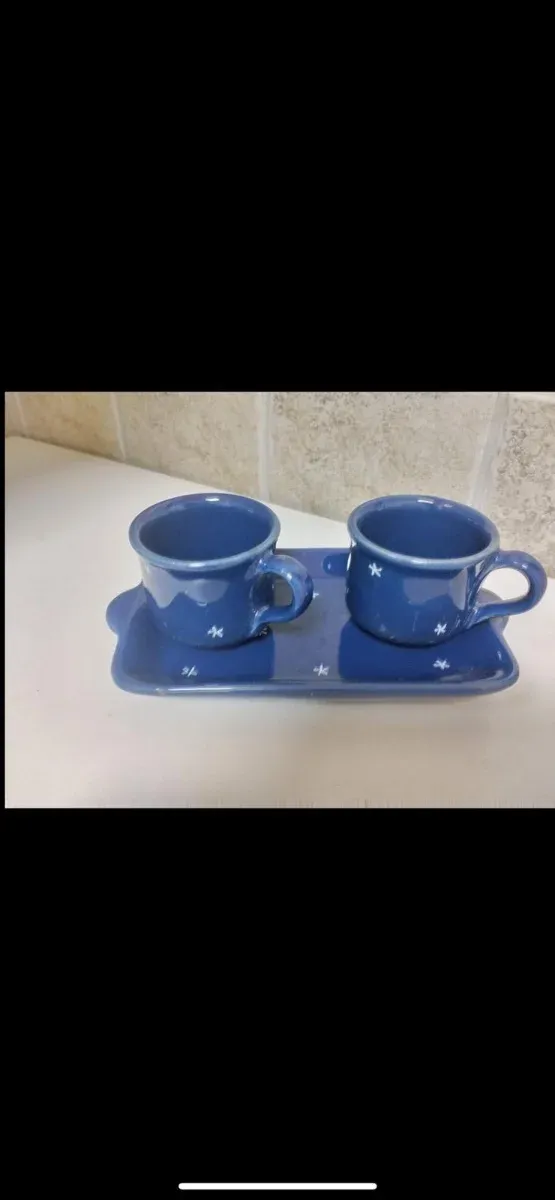 Set 2 tazzine con vassoio blu