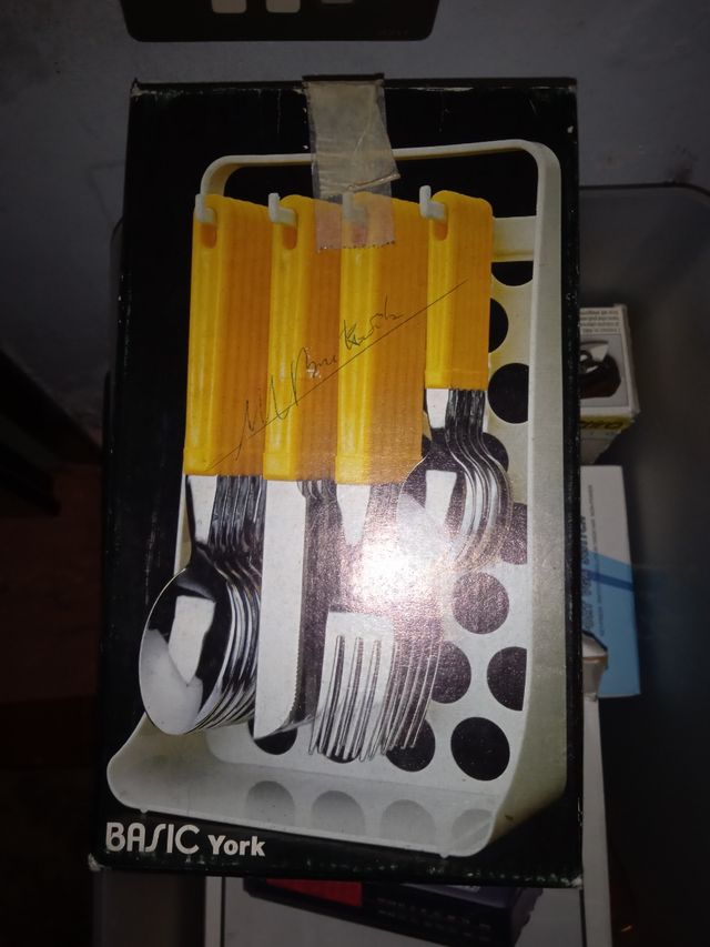 set 24 posate vintage con scatola e appendino, non credo siano mai state usate non avendole mai viste fuori. come da foto in condizioni buono ottime