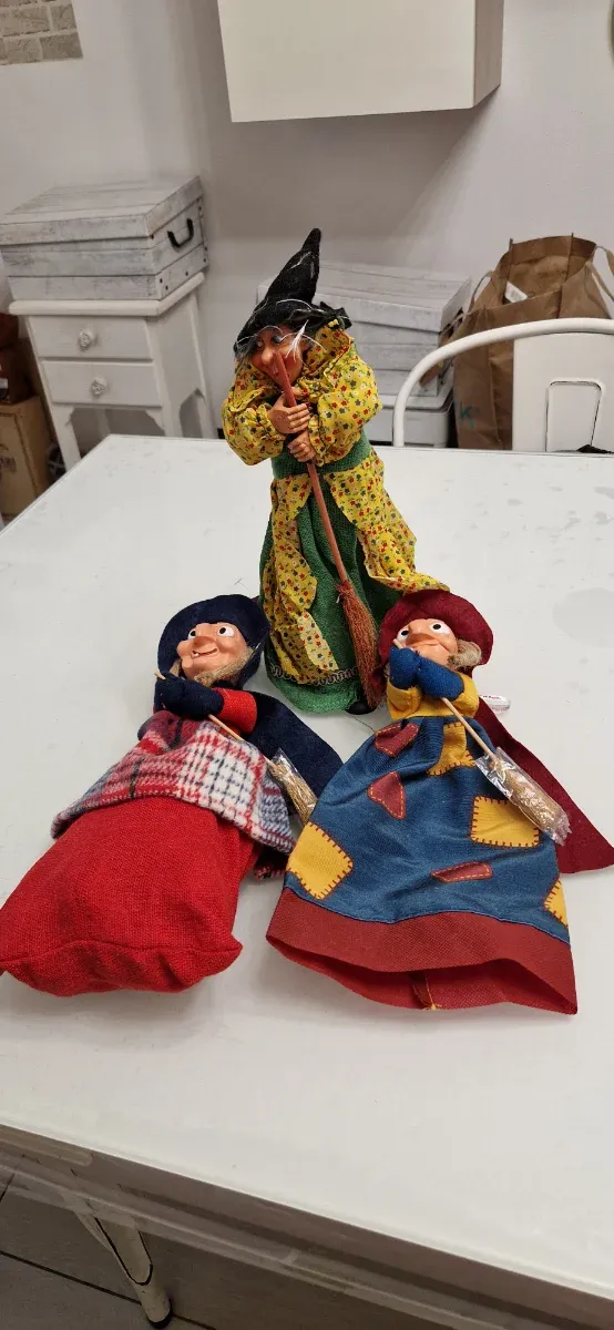 Dettagli del prodottoSet di tre befane riempibili, perfette per decorare. Due vanno appese una sta in piedi . Alte cm 35