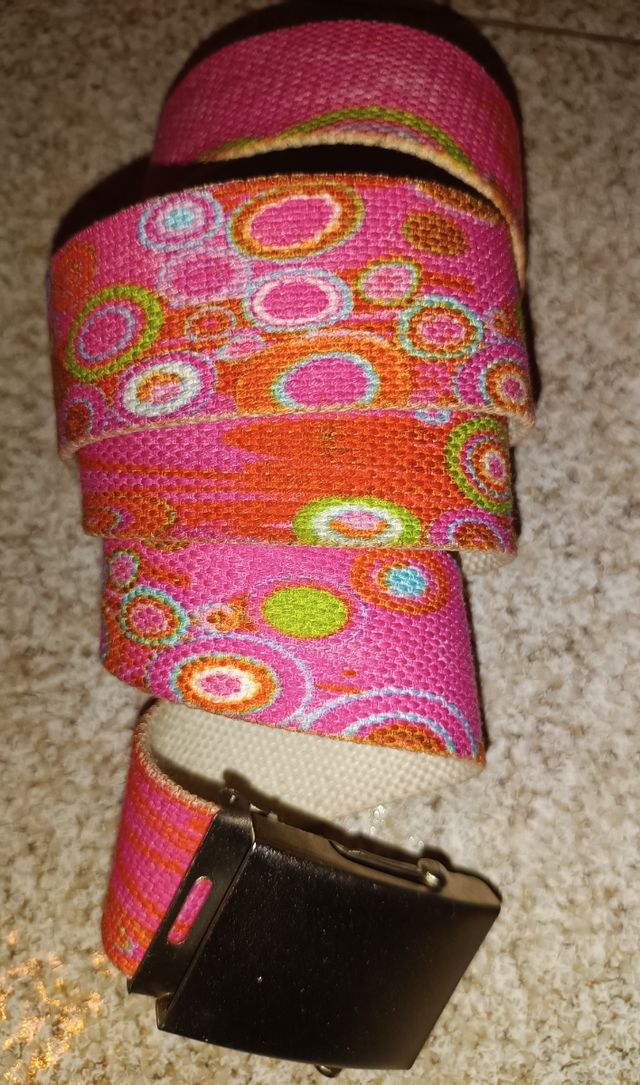 Dettagli del prodottoSet di tre cinture regolabili di tre colori diversi e bellissime sia con vestiti che con pantaloni. Sono comodissime e adatte ad ogni occasione. La cintura rosa è come nuova mentre le altre due sono in buone condizioni.
