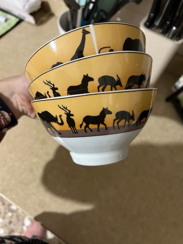 Set 3 Ciotole Ceramica Animali Savana