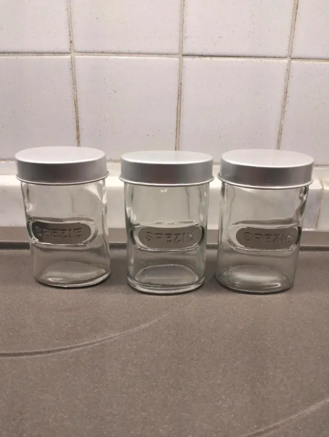Set 3 Contenitori Spezie Vetro e Metallo.