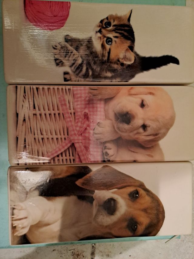 set 3 evaporatori per termosifoni con gancio incluso, ceramica, soggetto animali, usati pochissimo